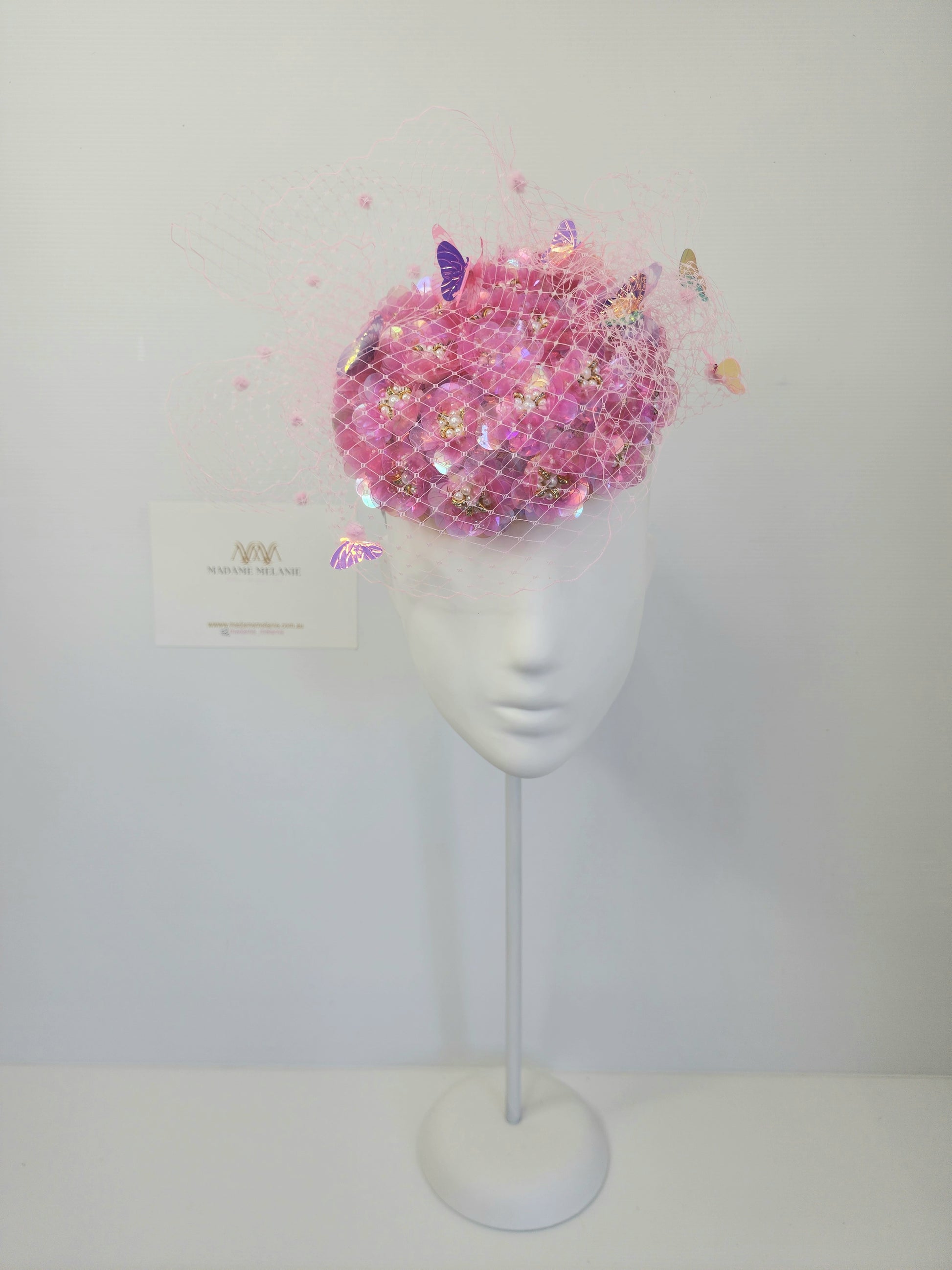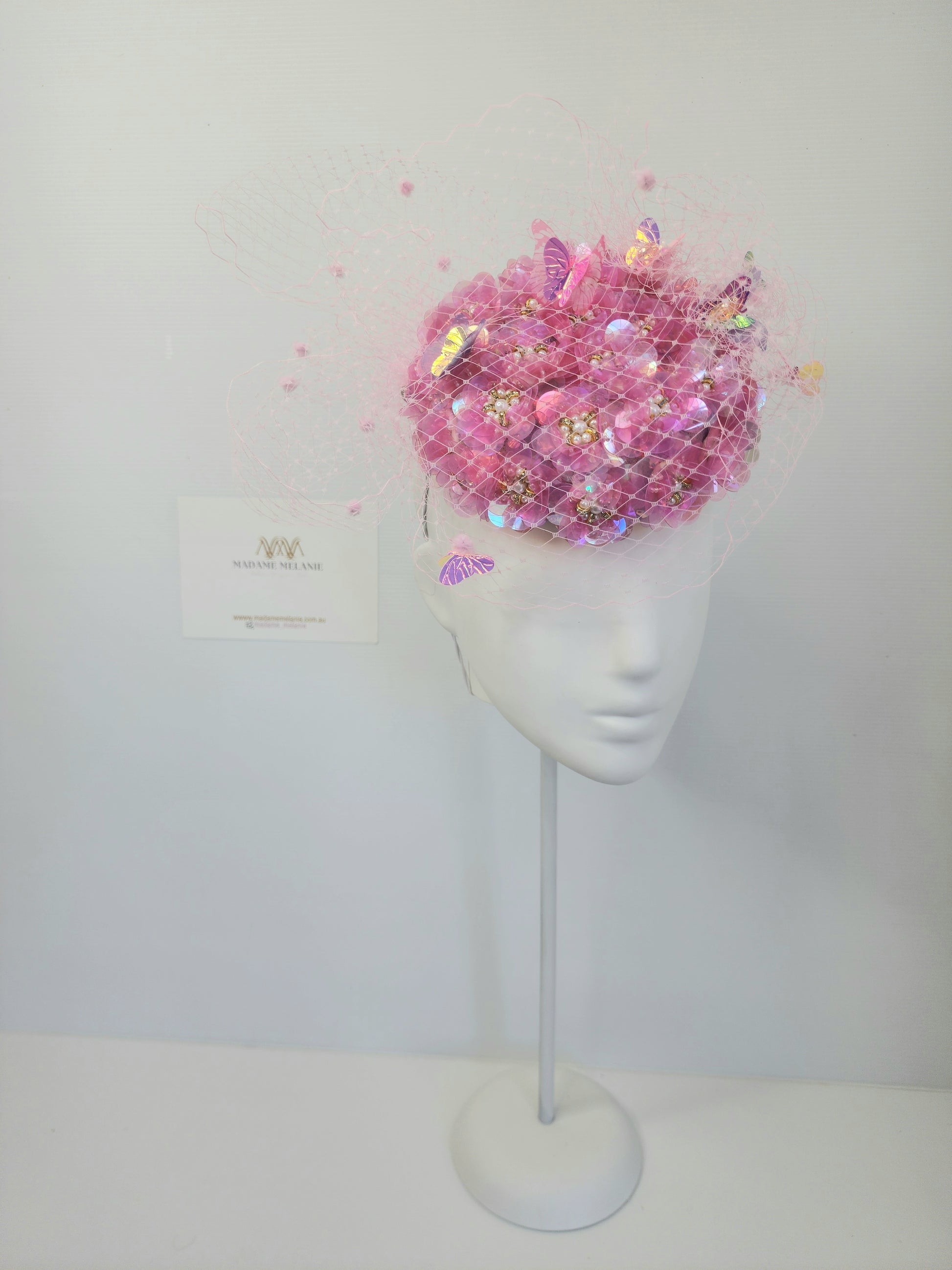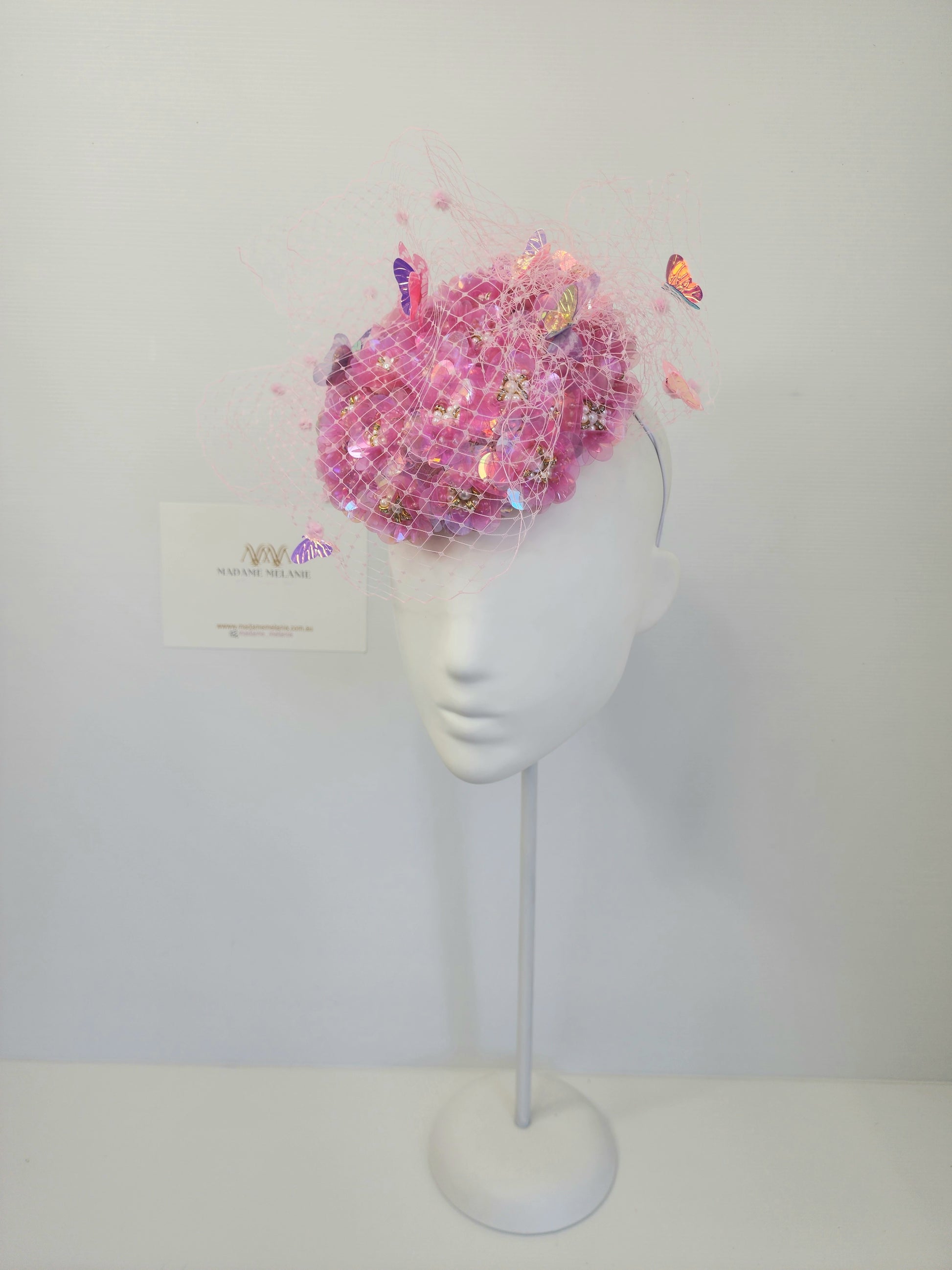 "Experience the elegance and whimsy of our Dancing Butterflies design. Handmade using high quality millinery techniques & featuring beautiful sequin flowers that shimmer in the light. Perfect for adding a touch of grace and charm to any outfit. Bring joy to your wardrobe with Dancing Butterflies."