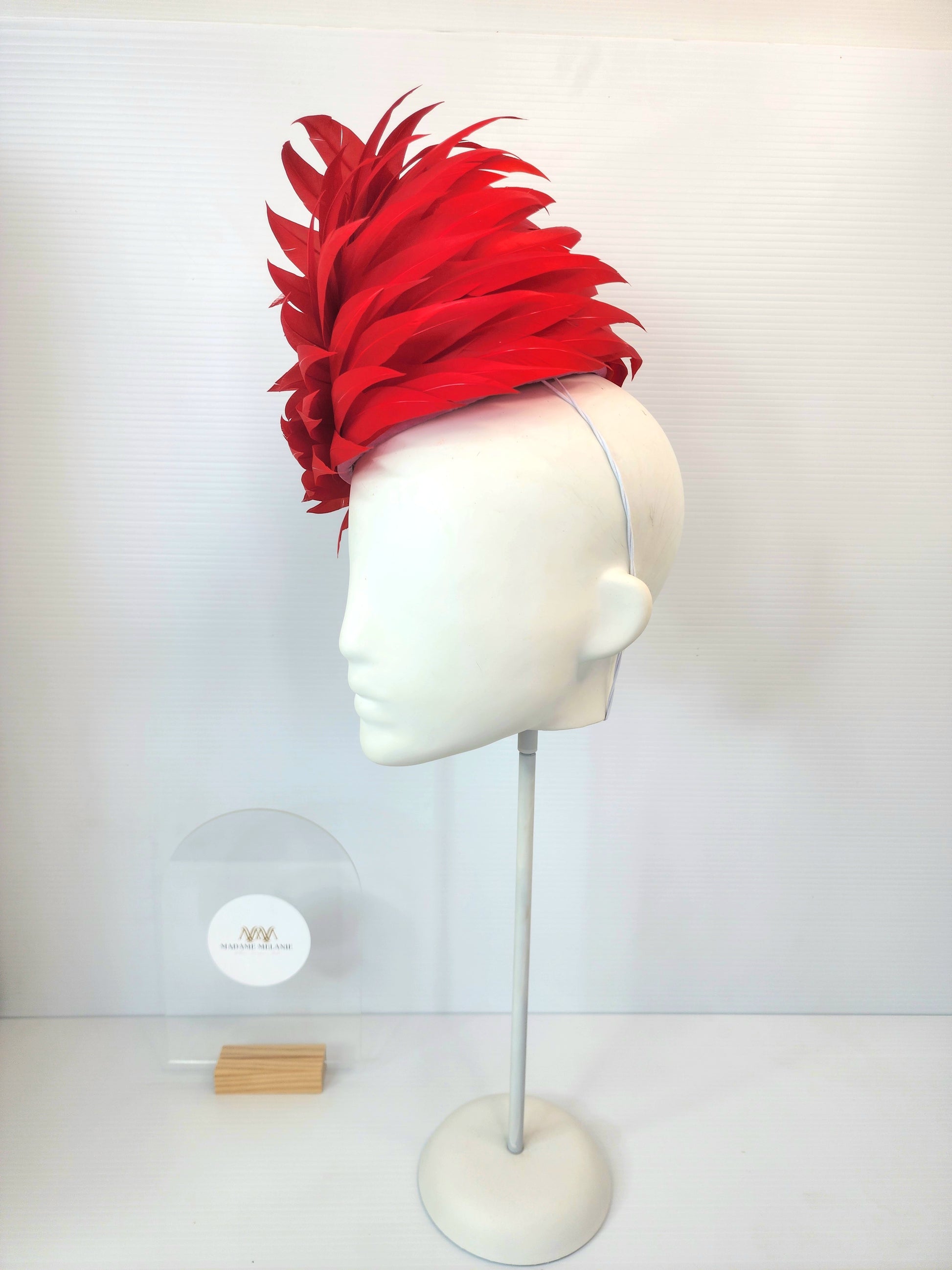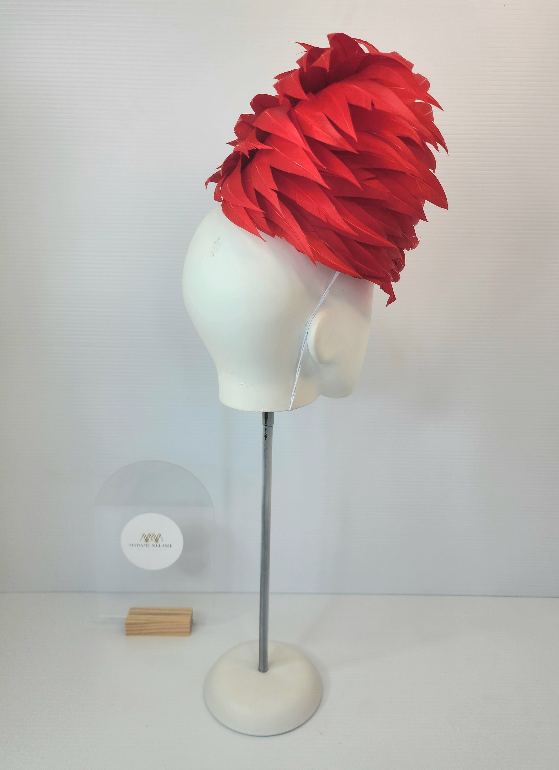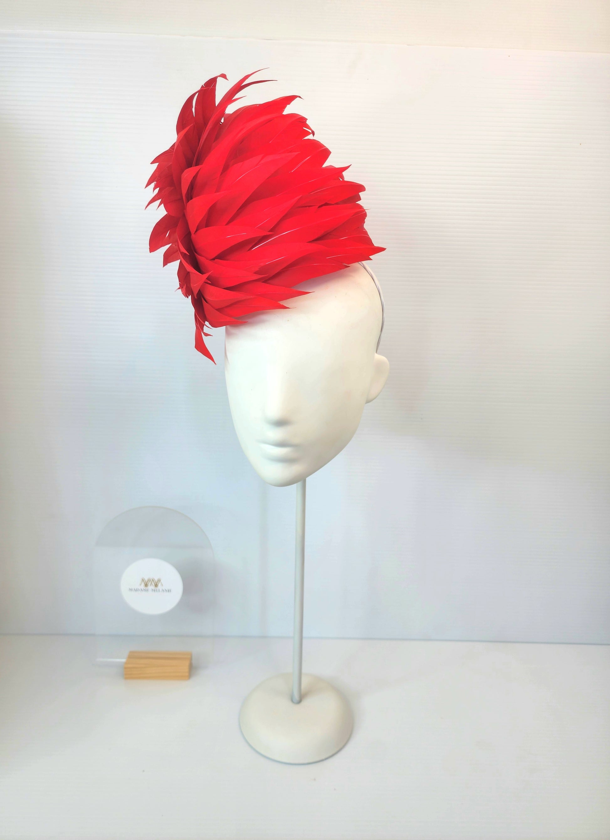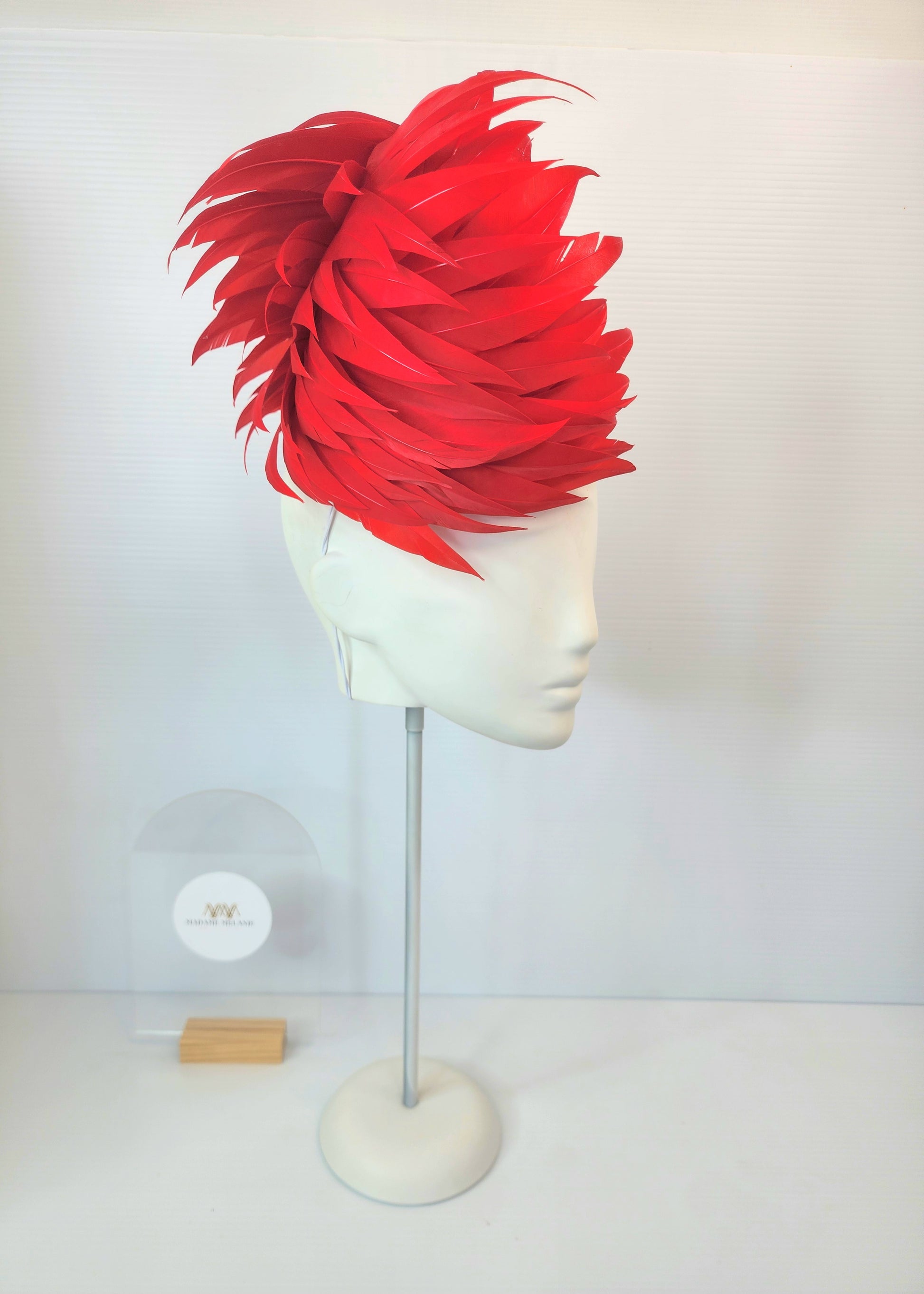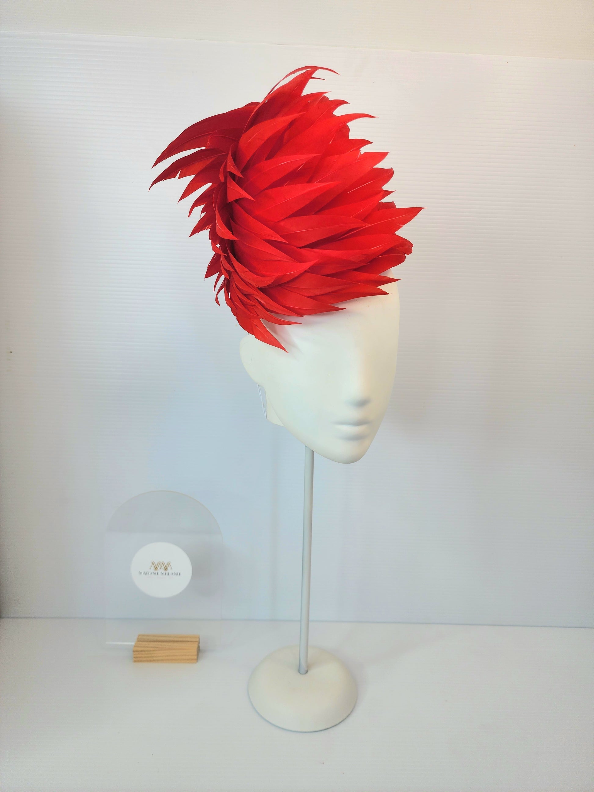 - Indulge in the luxury of Red Hot & Ready, our hand-crafted sculptural feather hat that evokes classic yet contemporary haute couture. Each piece is meticulously created by Madame Melanie Millinery.