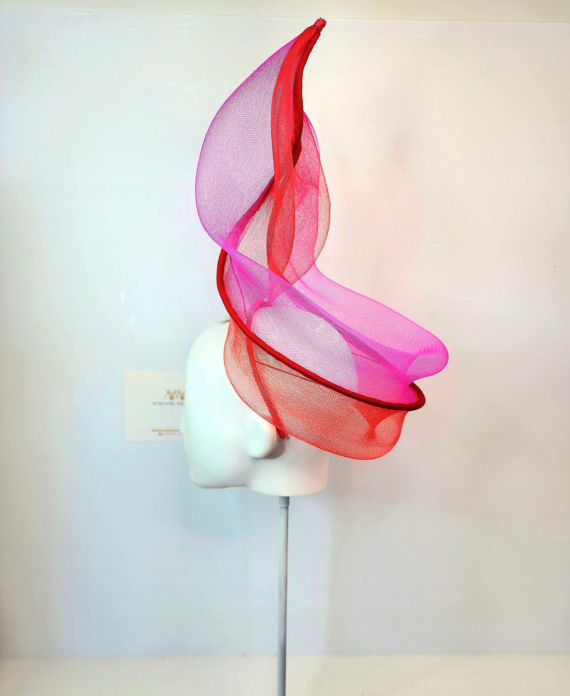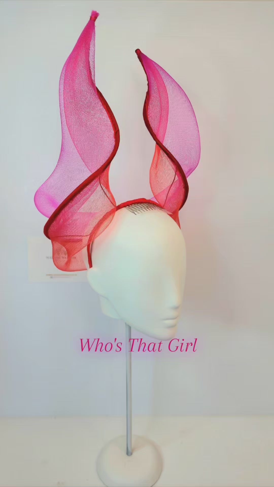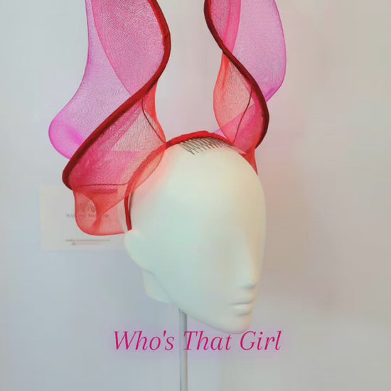 "Add a pop of color to your outfit with Who's That Girl, featuring 2 swirls in vibrant shades of red and pink.
