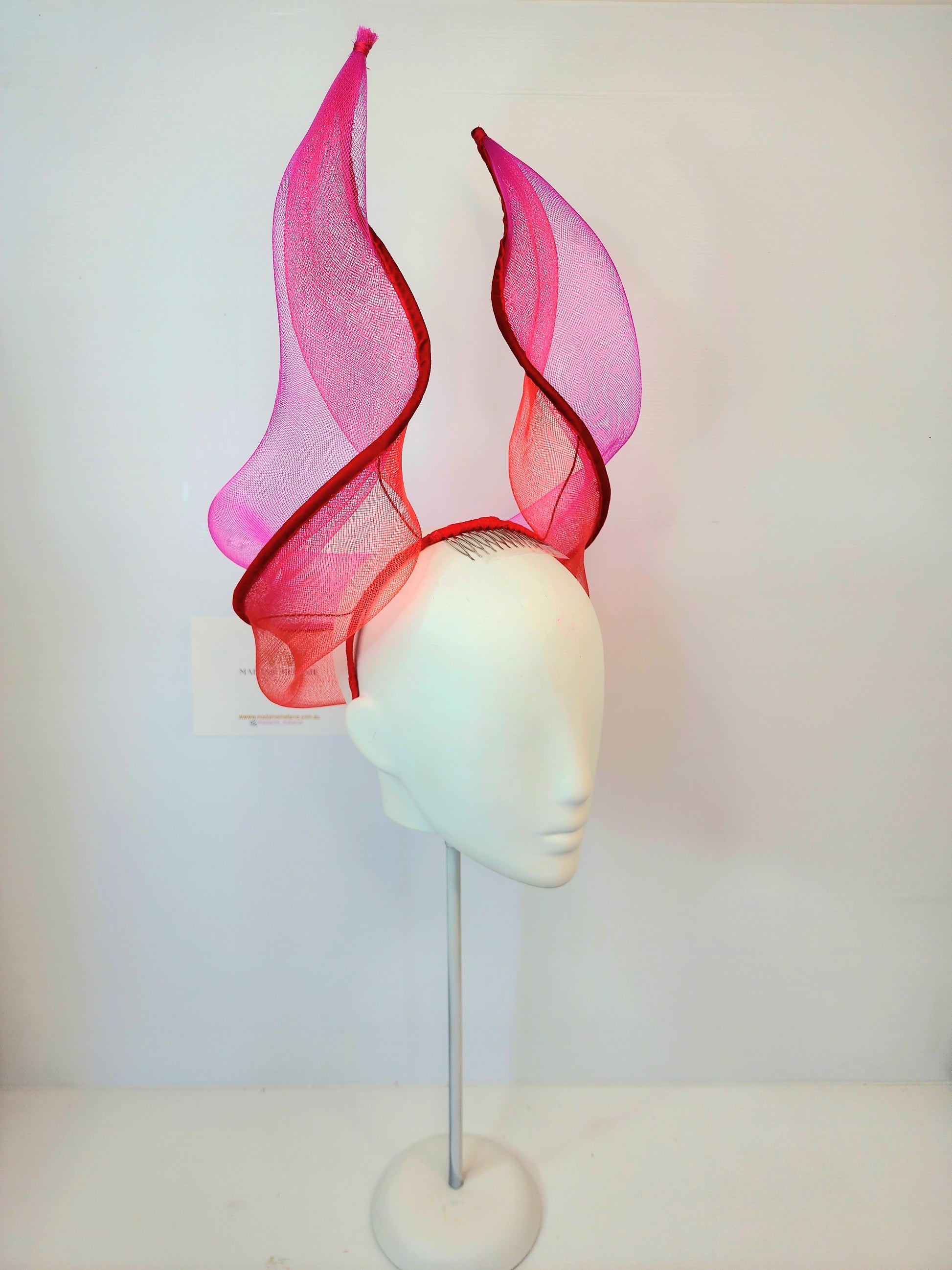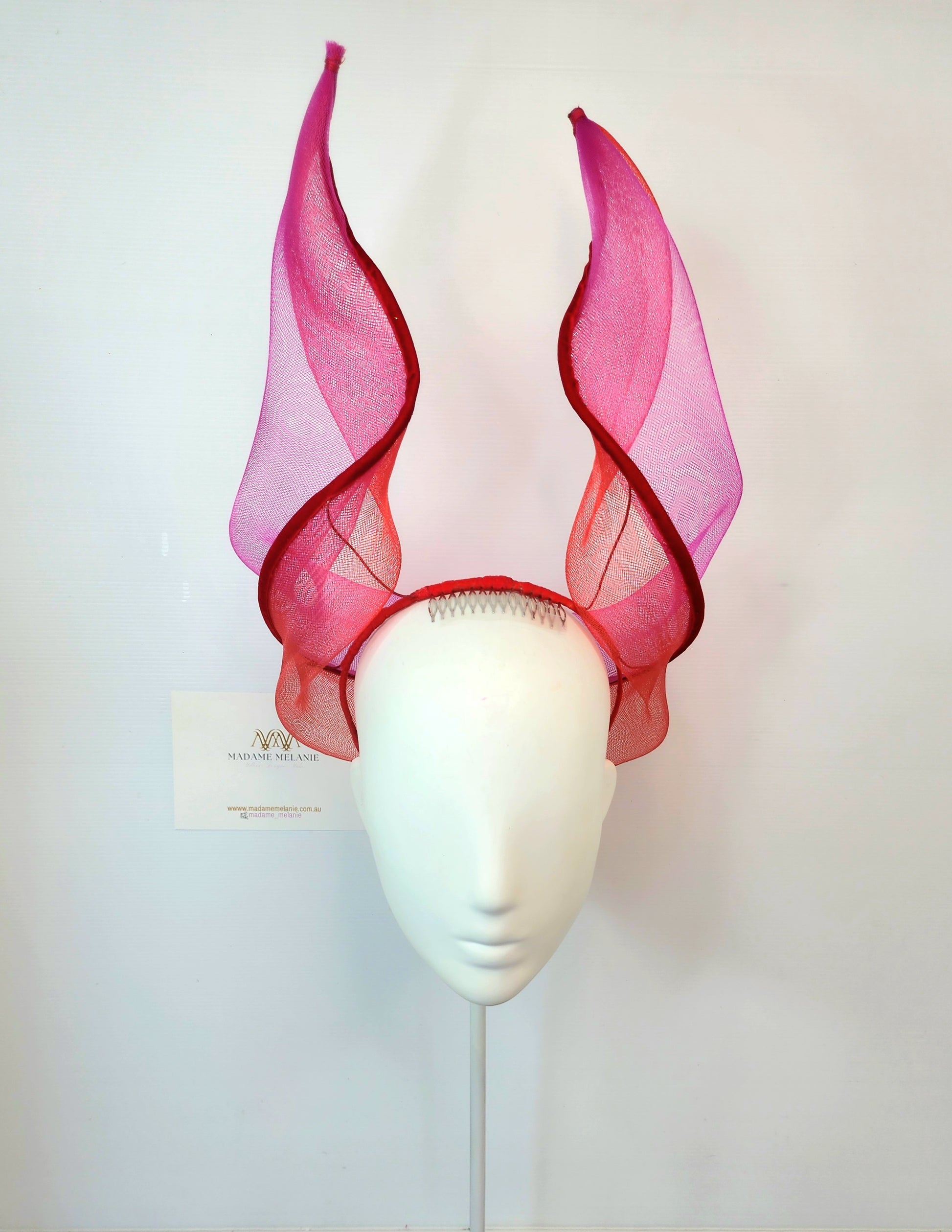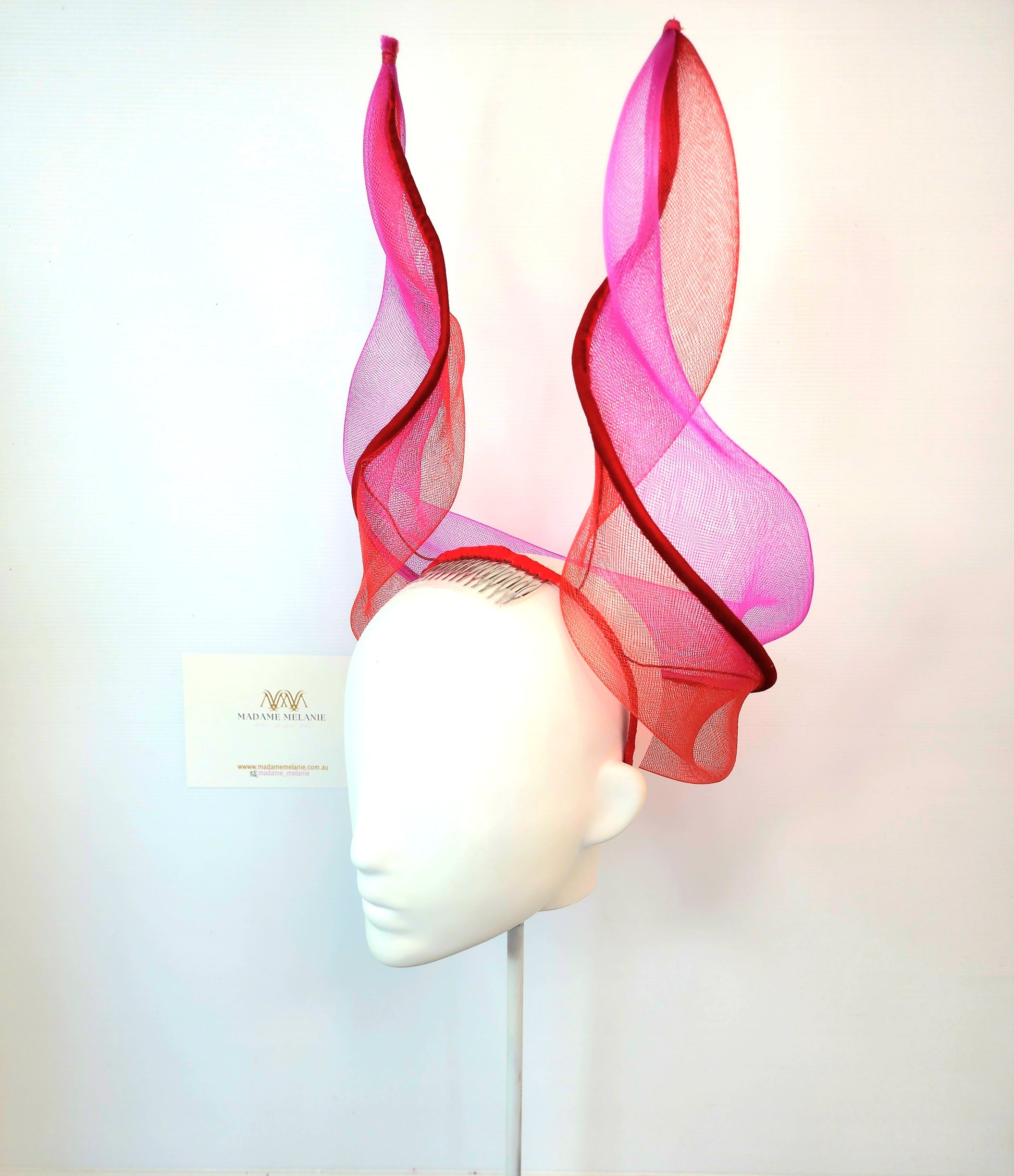 "Add a pop of color to your outfit with Who's That Girl, featuring 2 swirls in vibrant shades of red and pink.